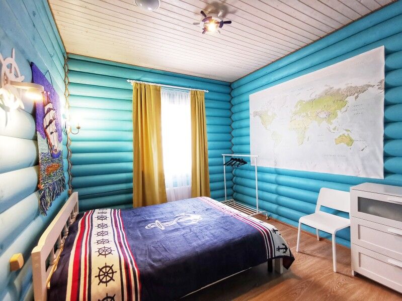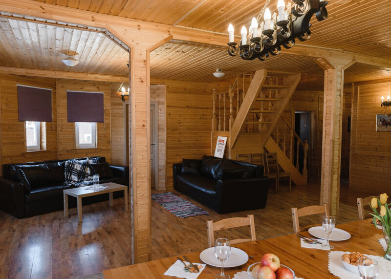 В доме — 2 спальни с удобными двуспальными и односпальными кроватями и гостиная с диваном, где смогут разместиться до 8 человек. Оборудованная кухня со всей необходимой техникой (холодильник, плита с духовкой, микроволновая печь, чайник) и полным набором посуды. В гостиной — кабельное ТВ. Бесплатный интернет через Wi-Fi. В доме 2 санузла и финская сауна!