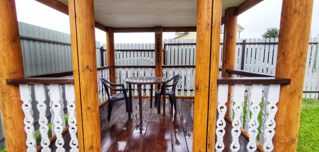 Дополнительно можно воспользоваться мангалом и беседкой с уличной мебелью в саду. Домик имеет свою огороженную территорию и парковку. Также можно воспользоваться общей детской и спортивной площадками.