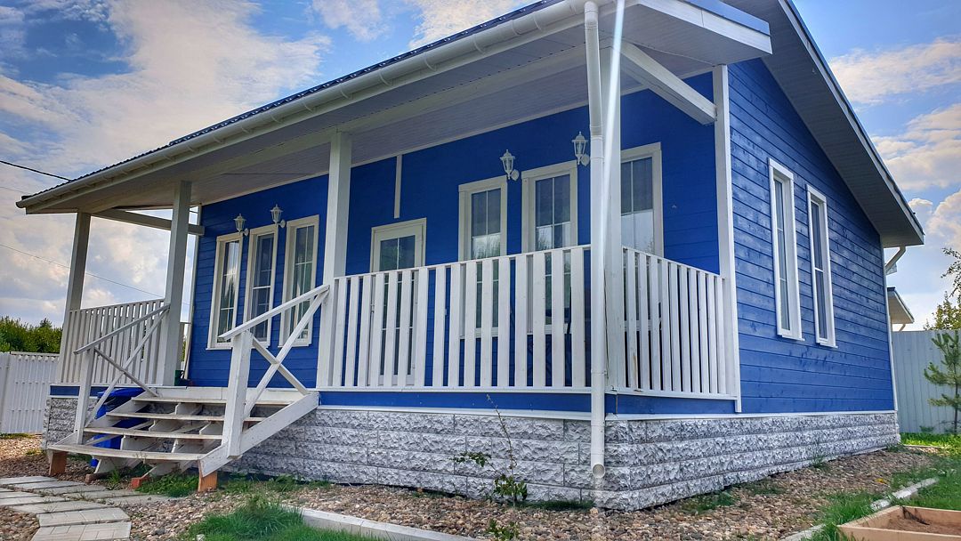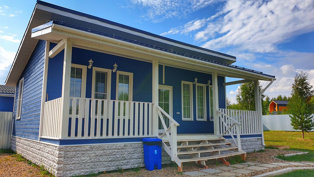 Просторный одноэтажный коттедж с сауной выполненный в стиле американского Кантри.