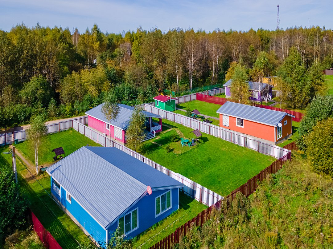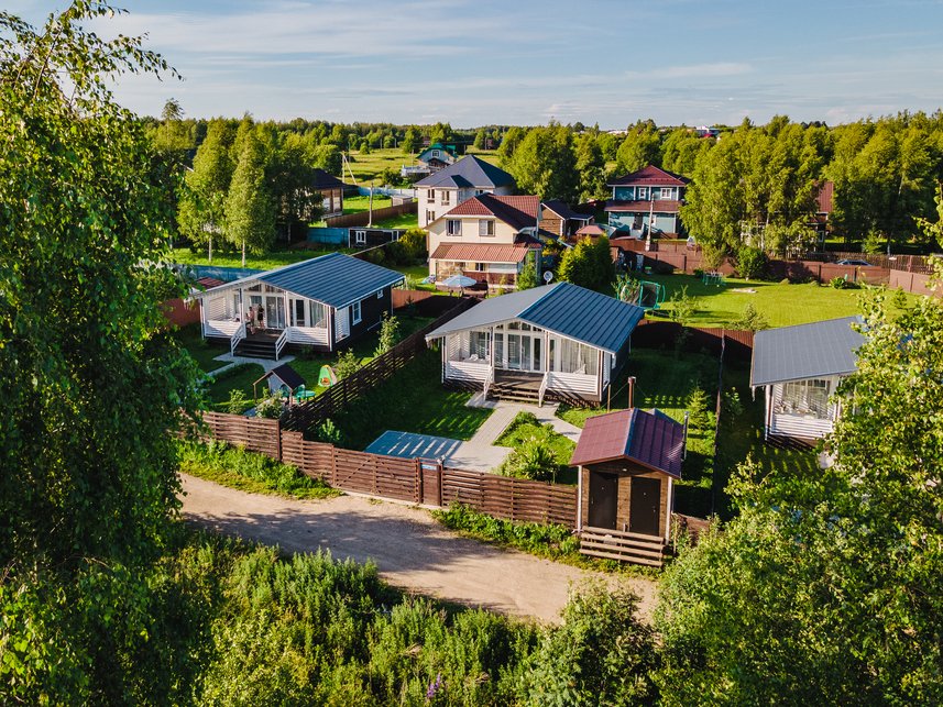 Комплекс из 4 домов-шалашей имеет свою отдельную огороженную территорию и детскую площадку.