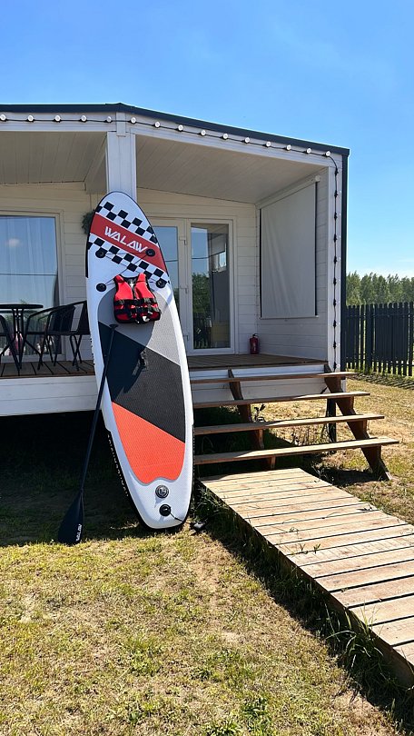 Современные и стильные домики обладают панорамным остеклением, открывающим великолепные виды на загородные пейзажи. Река находится в непосредственной близости — достаточно выйти за калитку и спуститься к берегу.