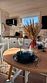 Интерьер очень уютный, в теплой гамме, с элементами бохо, эко-стиль. Вид из панорамных окон не во внутренний двор, а на лесные пейзажи и поля.