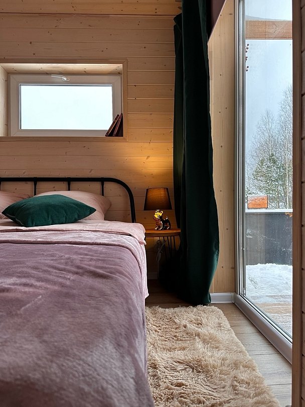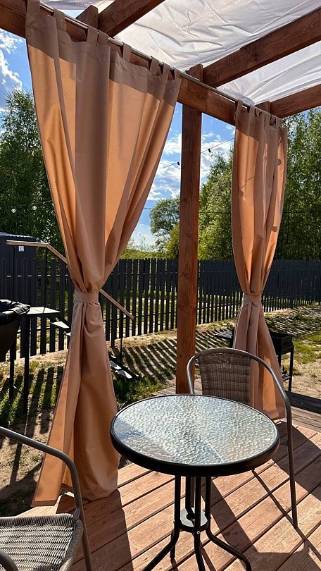 На открытой террасе вас ждёт уютный столик со стульями и тёплые пледы. На территории организована удобная парковка с видеонаблюдением. Постельное бельё и набор полотенец предоставляются.