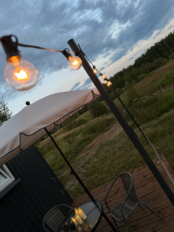 - на открытой террасе столик со стульями, теплые и мягкие пледы;