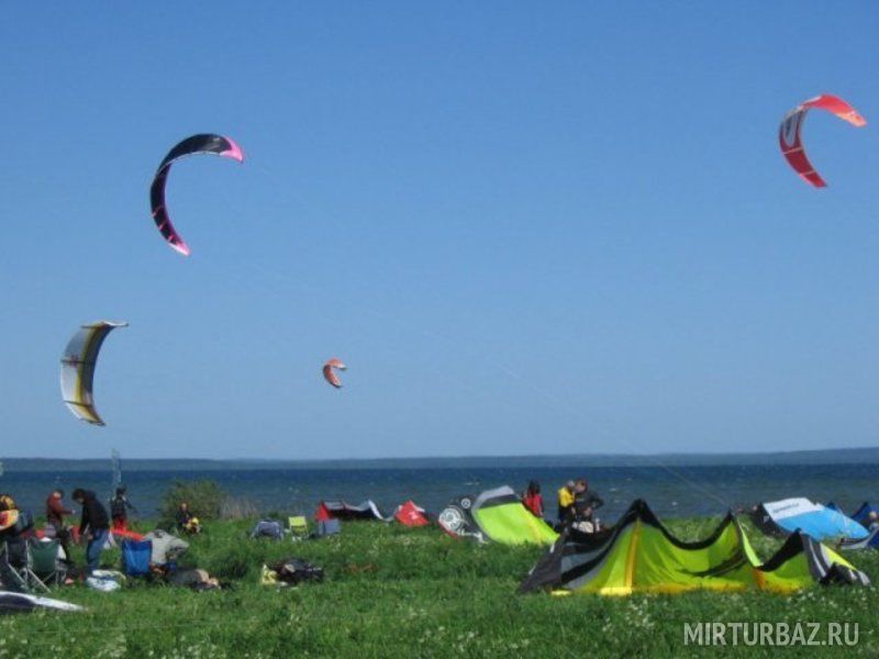 Есть банька. Фубольное и волейбольные площадки. Кайт-зона и серф-пляж. Детская площадка.
