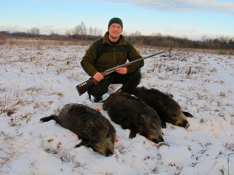 1. Охота на кабана: кабан с подхода на потравах, с вышки, загоном. Стоимость обслуживания (сопровождение егерей, транспорт, разделка трофея) на одного охотника — 4500 ₽.