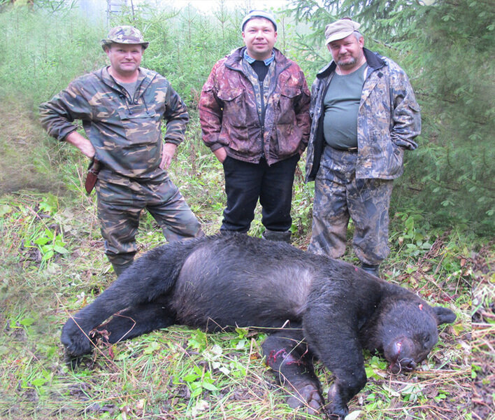2. Охота на медведя: медведь на овсах. Стоимость обслуживания (сопровождение егерей, транспорт, разделка трофея) на одного охотника — 4500 ₽.