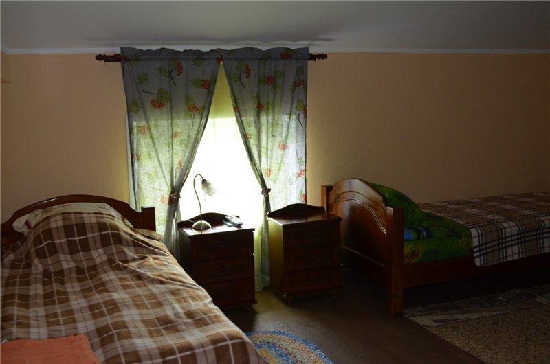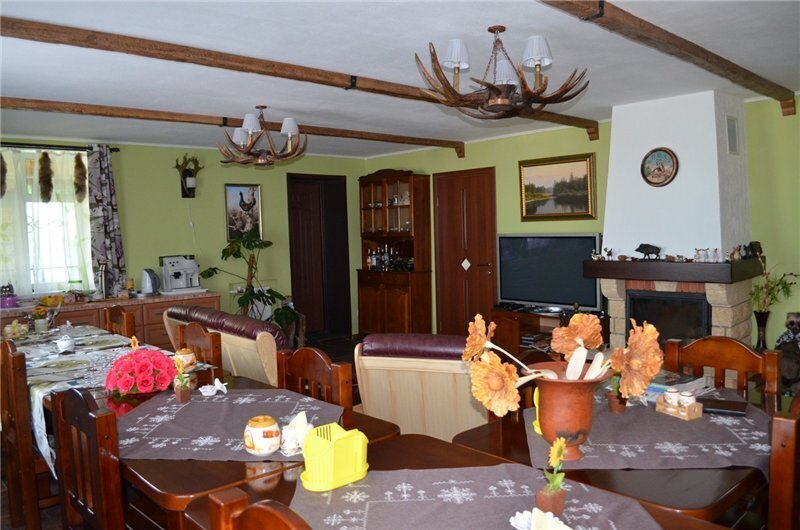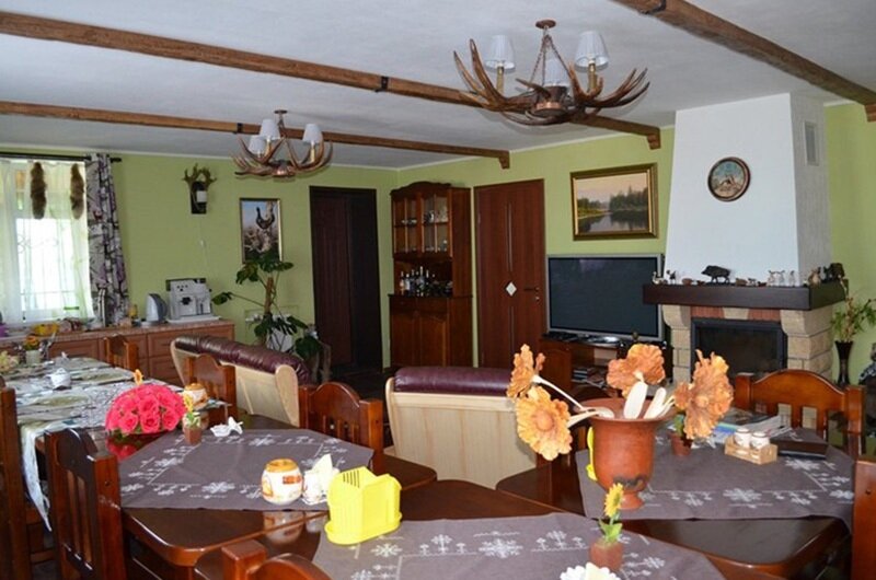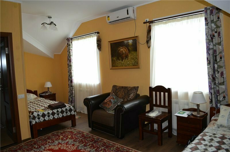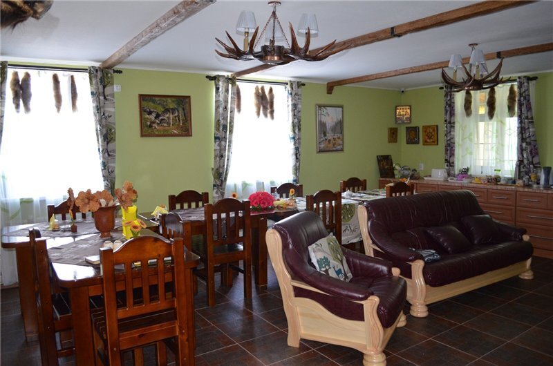 Главный дом для гостей, имеющий общую гостиную и камин, способен вместить четырнадцать человек. Каждый номер рассчитан на двоих или троих проживающих. Отдельно расположен "Домик егеря", он предусмотрен на четыре человека.
