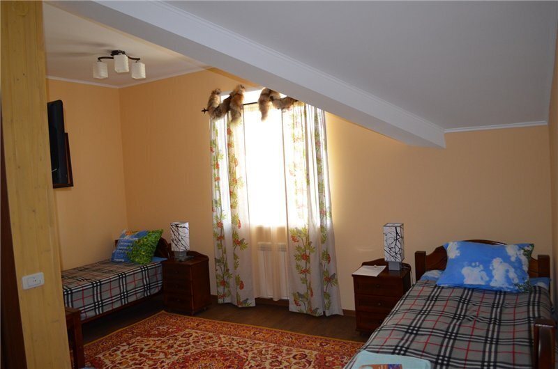 «Домик Егеря» с двумя двухместными номерами, полностью оборудованной кухней и просторной летней мансардой.