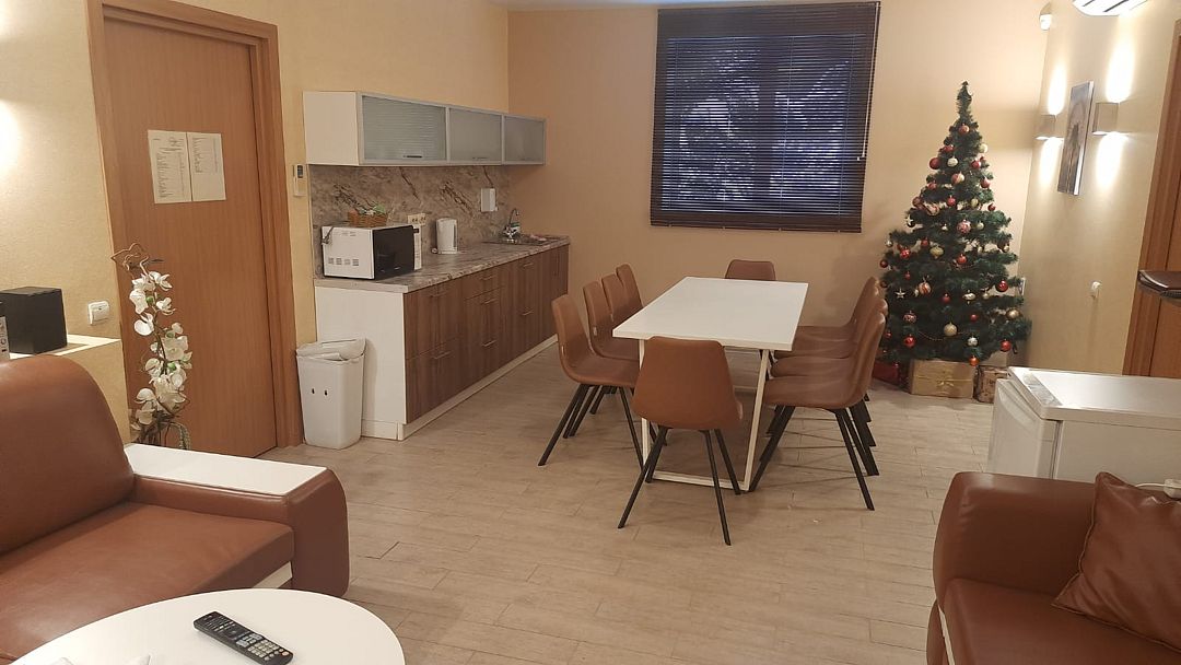 - комната отдыха с кухней: TV, Wi–Fi, холодильник, чайник, набор посуды;