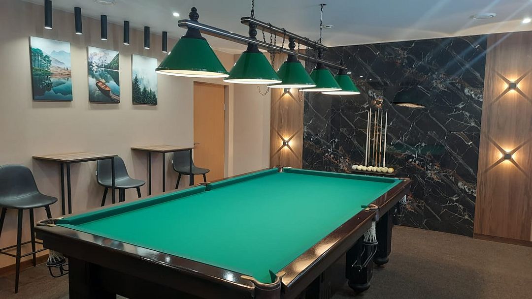 - Основной зал: элегантный, просторный, прекрасно подходит для различных торжеств вместимостью до 100 человек.