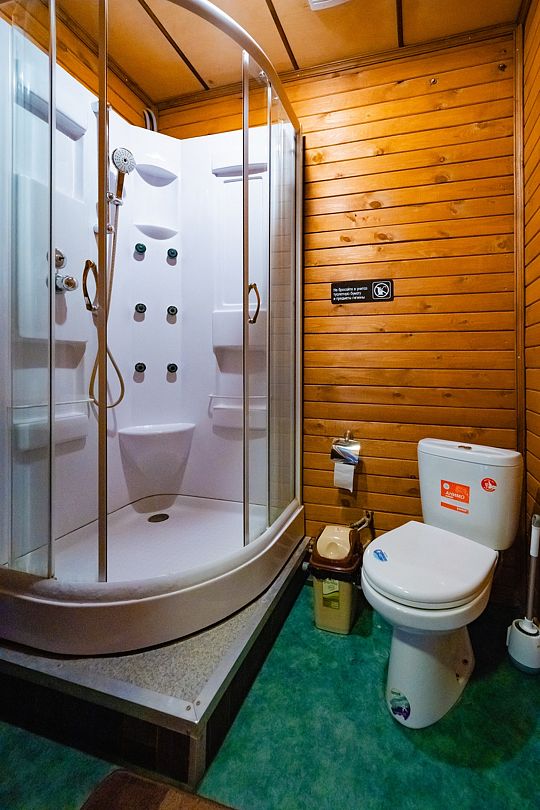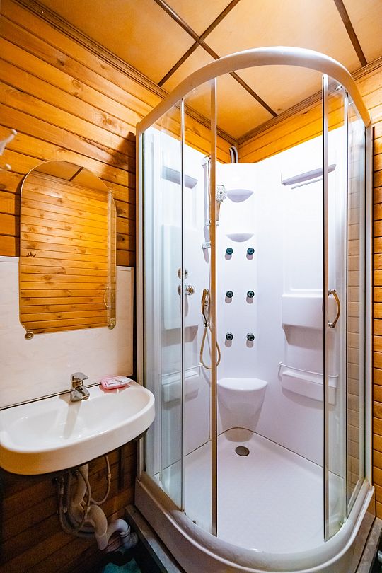В номере есть телевизор со спутниковыми каналами, мини-холодильник, кондиционер, диван, комод, стол, стулья, тумбочки, вешалка для одежды. Сан. узел общий в холле, включает умывальник, душевую кабину, унитаз. На каждого гостя предоставляется по 2 полотенца (банное и для рук), одноразовые тапочки, гель для душа, шампунь для волос. Тапочки для сауны, зубные щетки и паста можно приобрести за дополнительную плату.