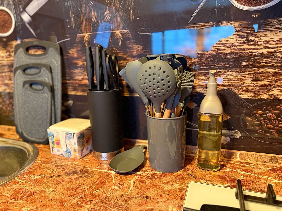 В доме есть 2 туалета, 2 душа, 4 спальни с двуспальными кроватями, 1 диван и 2 раскладные кровати. Также в доме имеется кондиционер, интернет Wi-Fi, телевизор и спутниковое ТВ, стиральная машина, утюг и гладильная доска, холодильник, микроволновка, лектрический чайник, кухонная плита и вся необходимая посуда.