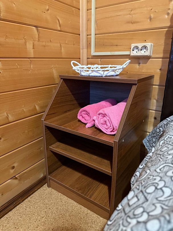 В номере есть телевизор со спутниковыми каналами, мини-холодильник, комод, стулья, тумбочки, вешалка для одежды. Санузел общий в холле, включает умывальник, душевую кабину, унитаз. На каждого гостя предоставляется по 2 полотенца (банное и для рук), одноразовые тапочки, гель для душа, шампунь для волос. Тапочки для сауны, зубные щетки и паста можно приобрести за дополнительную плату.