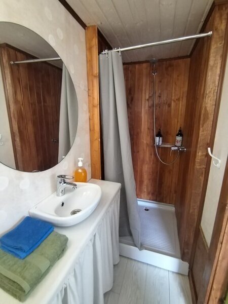 В номерах есть: набор полотенец и постельного белья, шкаф, вентилятор, удобства (душ и туалет), фен.