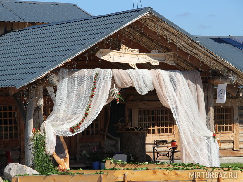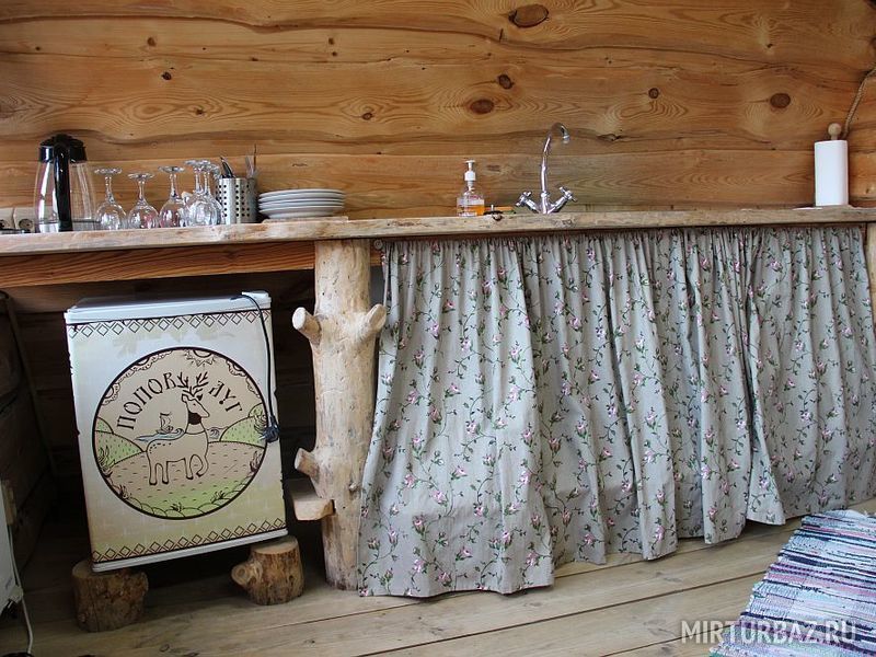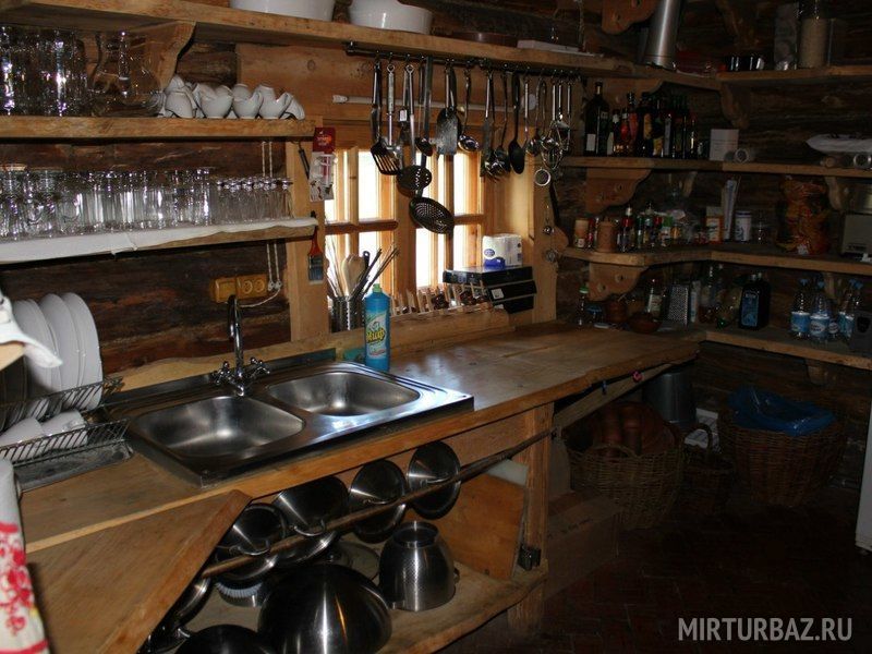 В каждом коттедже имеется собственная мини-кухня с посудой и чайником. Также работает трактир и специальная юрта для чаепитий.