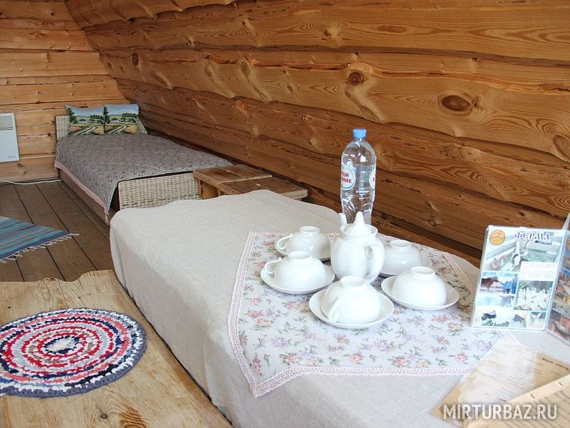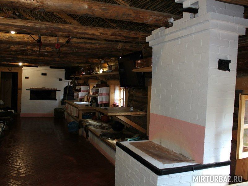Одноэтажный дом. В доме: полати двухъярусные на 8 человек + двуспальное место на печи + 2 дополнительных места, санузел, душевая кабина, ТВ-спутник + телевизор + караоке, средства личной гигиены, кухня: посуда, холодильник, электроприборы, чайник, Wi-fi, зал для проведения мероприятий, русская печь, маленькая печка в зале.