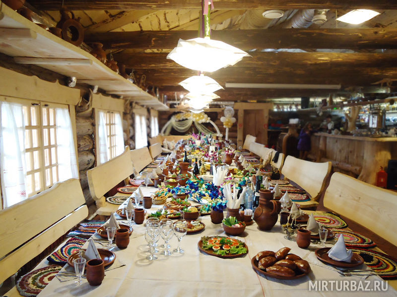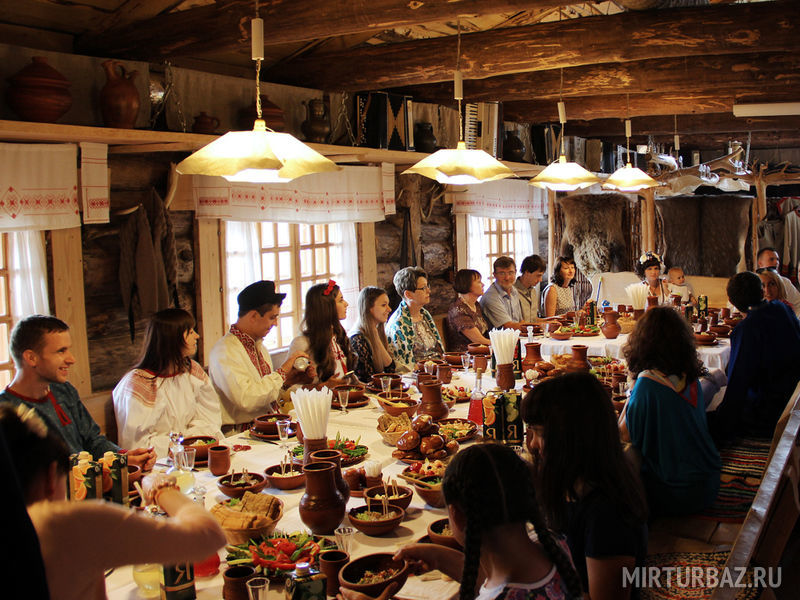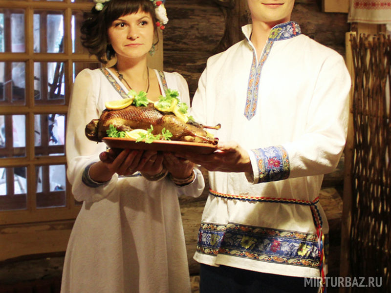 А пока повар занят приготовлением вашего заказа, можно насладиться искусством фольклорных ансамблей, с хоровым и сольным пением, с виртуозной игрой на русских народных инструментах.
