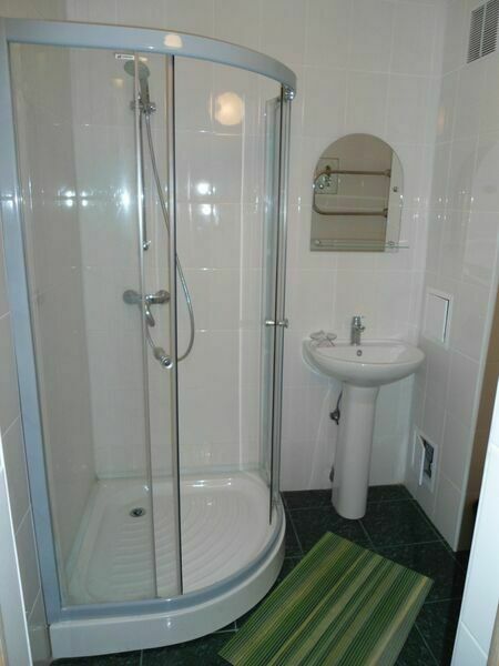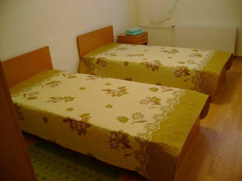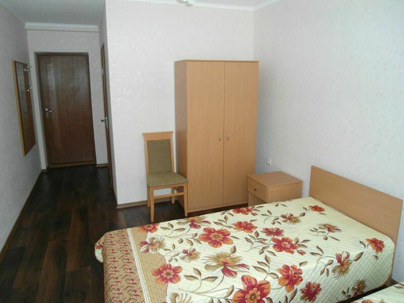 В номере: две полутороспальные кровати, шкаф, две тумбочки, телевизор, санузел (душ, туалет).