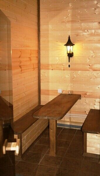 на первом этаже: уютную сауну на 6-8 человек, зал-трапеза на 12 человек + 2 спальных места.