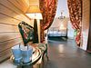 Эту комнату с яркими портьерами назвали в честь двух симпатичных стульев, на которых поселились тропические попугаи. Вас порадуют не только льняные шторы с россыпью цветов, но и табуретки ручной работы.