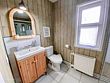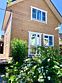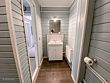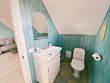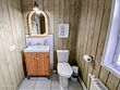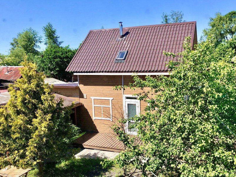 Двухэтажный домик в глубине участка. На первом этаже размещается душевая, санузел и кухня-столовая. На втором этаже находятся две комнаты: спальня и гостиная с раскладным диваном.