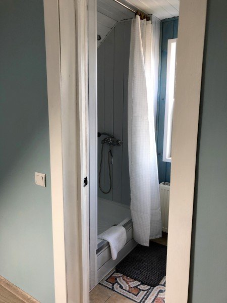 Уютная но просторная комната под самой крышей с отдельным санузлом/душем. В номере есть чайник, чашки, кофе/чай, фен. WiFi бесплатный во всей гостинице.