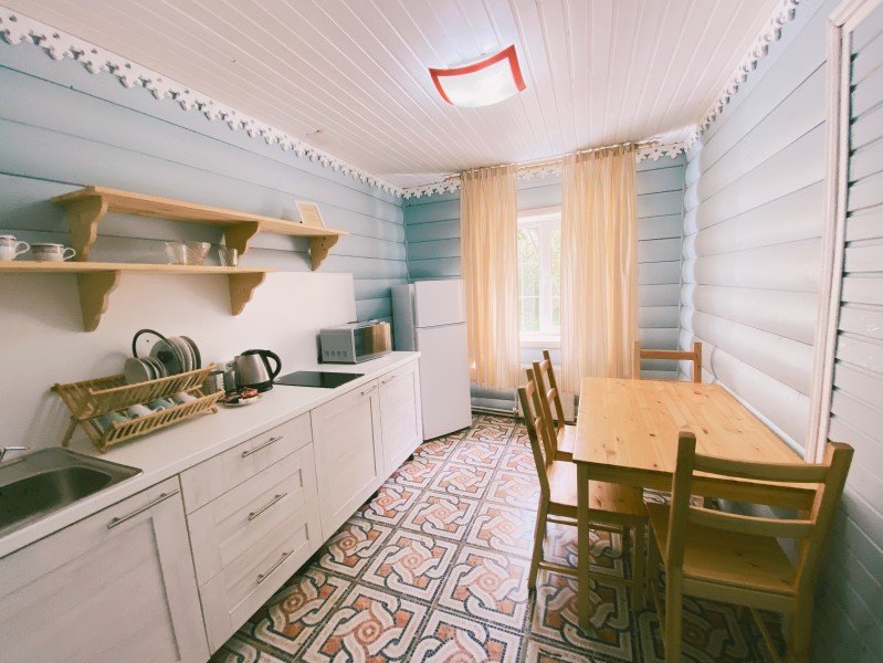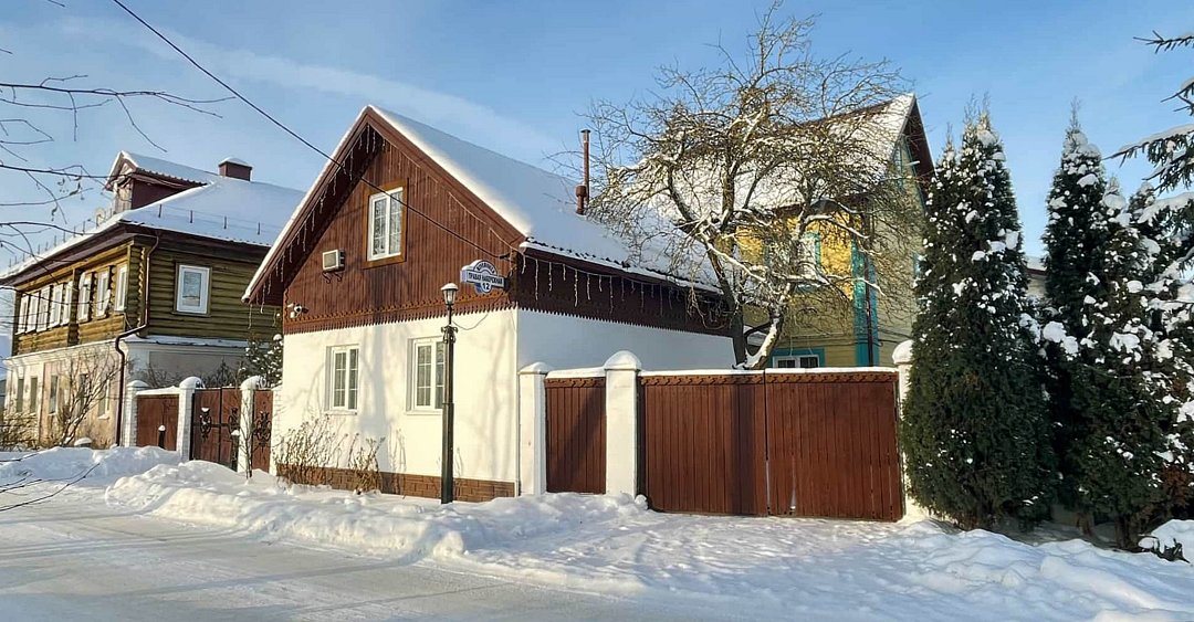 апр. 2022 г.Уютный домик в хорошем местеОстановились на 2 ночи в конце апреля в домике у реки. Домик очень уютный, удобный, полностью оснащенный. По факту может разместиться 7 человек. Кровати удобные, белье белоснежное, мягкое. Посуды полно разной. Во дворе мангальная зона, под окнами река, через мостик слева можно попасть на валы и к нескольким музеям, если не переходить реку - рядом дом культуры с большой площадью и детской площадкой. Рядом пятерочка, магнит, столовая. Парковка за территорией и внутри, но внутри как-то всю улицу машины занимают - мы припарковались у реки. Единственный минус - отопление не регулируется - либо включается на полную, так что не прикоснуться к батареям, либо отключаешь совсем и в домике холодно. Зато можно отключать не все комнаты, в общем справились сделать комфортно.