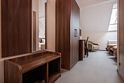 телевизор, кабельное телевидение, Wi-Fi, кондиционер, светильник, фен, душевая кабина, санузел, банные полотенца, тапочки, косметические средства, односпальная кровать, шкаф для одежды, вешалки, письменный стол, багажная тумба, зеркало, чайник, раковина, ковровое покрытие, вид на сад, вид на город, кулер на этаже, кресло, стул, тумба, внутренний телефон, фумигатор, уборка номераВ гостиничном номере