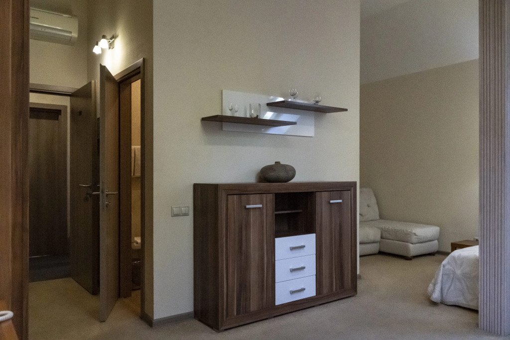 Просторный номер Джуниор сьют , расположен на 3 этаже (мансардного типа)- дизайн выполнен в современном стиле, идеально подходит для семейного отдыха с детьми или компании друзей. Номера оснащены душевой кабиной, зеркалом с подсветкой, косметические средства Предусмотрены: Чайная станция и капсульная кофе машина, холодильник, письменный стол и кондиционер. Комфортная эргономичная мебель, шторы Blackout Уютный фирменный халат и тапочки для каждого проживающего гостя К Вашим услугам: Wi-Fi, парковка, бассейн c сауной.Услуги и удобства