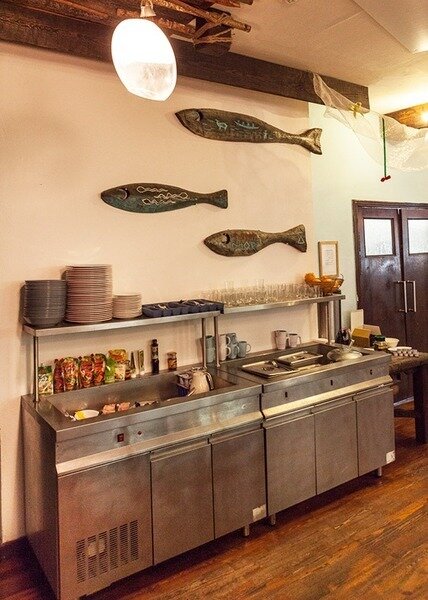Все блюда ресторана готовятся из самых свежих, экологически чистых продуктов. Зал выполнен в морском эко–стиле.