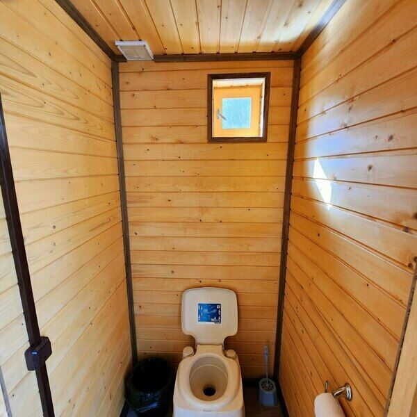 Туалет располагаются в непосредственной близости от шатра на улице.