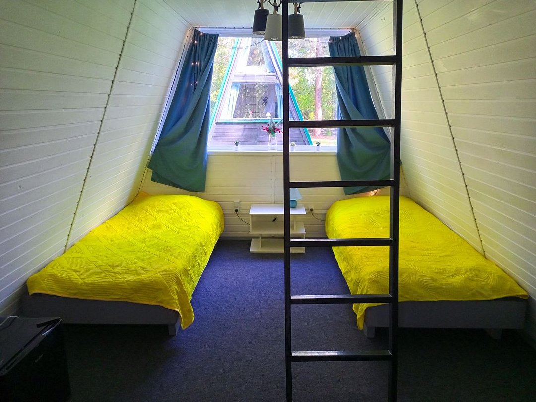 Внутри двуспальная кровать с постельным бельем (трансформируется в односпальные), так же, по желанию гостей, может быть добавлено одно дополнительное спальное место. Так же есть освещение, розетки, стеллаж для хранения вещей, прикроватные тумбочки, коврики, полка для хранения обуви и декоративные элементы. Для вентиляции предусмотрены специальные окна, на двери имеется москитная сетка. Для защиты от комаров так же установлены фумигаторы.