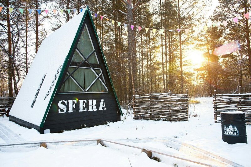 Всего 13 уютных отдельных домиков бережно вписаны в природу хвойного леса для одновременного размещения более 40 гостей! Все жилища утеплены и имеют различные системы отопления от каминов, работающих на дровах, до автоматических газовых конвекторов. Домики расположены в лесу, до берега озера всего 100 метров.