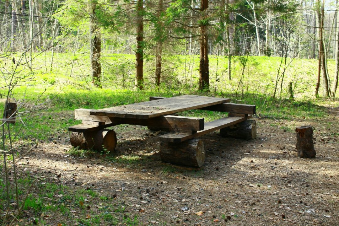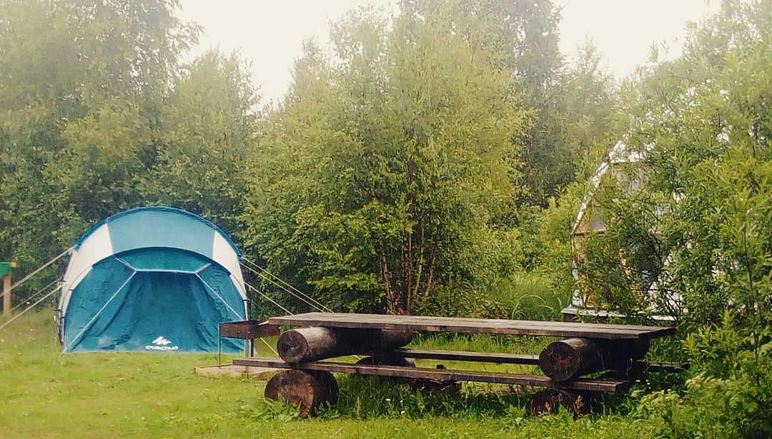 Место для пикника и установки палатки. Мангал, дрова, стол. Подготовленная полянка, где можно отдохнуть и установить свои палатки. На каждой поляне гостям предоставляется мангал, дрова и деревянный стол с лавочками. Территория покошена и обработана от змей. Полянки расположены в сосновом лесу, до озера около 300 метров, до парковки около 100 метров. Гости могут бесплатно пользоваться инфраструктурой кемпинга: парковка, волейбол, батут, баскетбольное кольцо, пирс, дрова, туалеты.