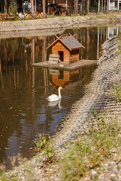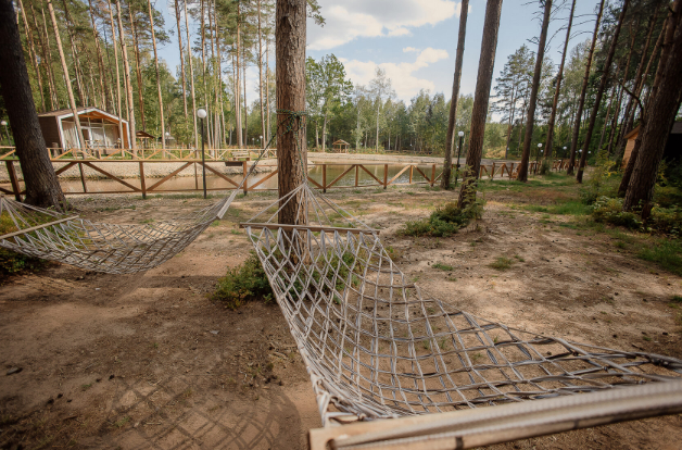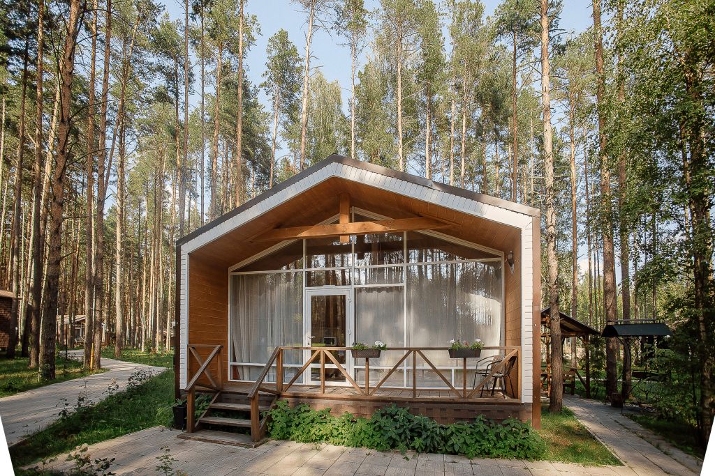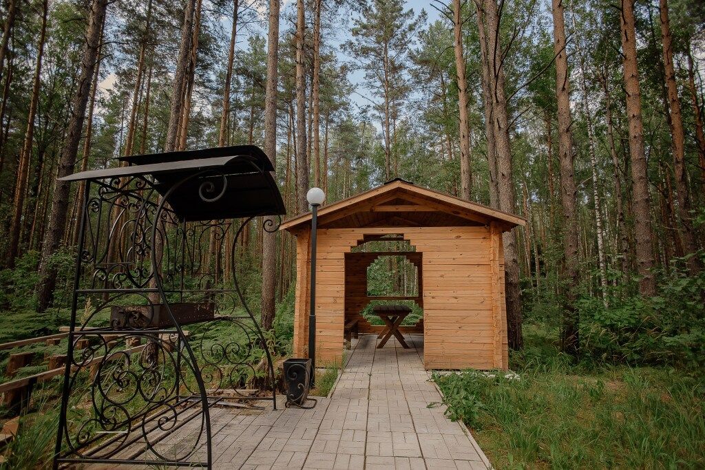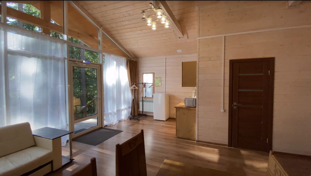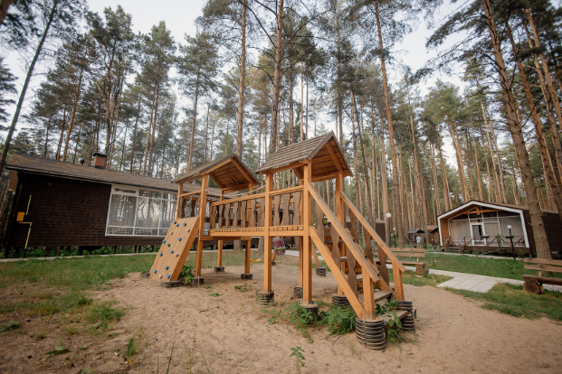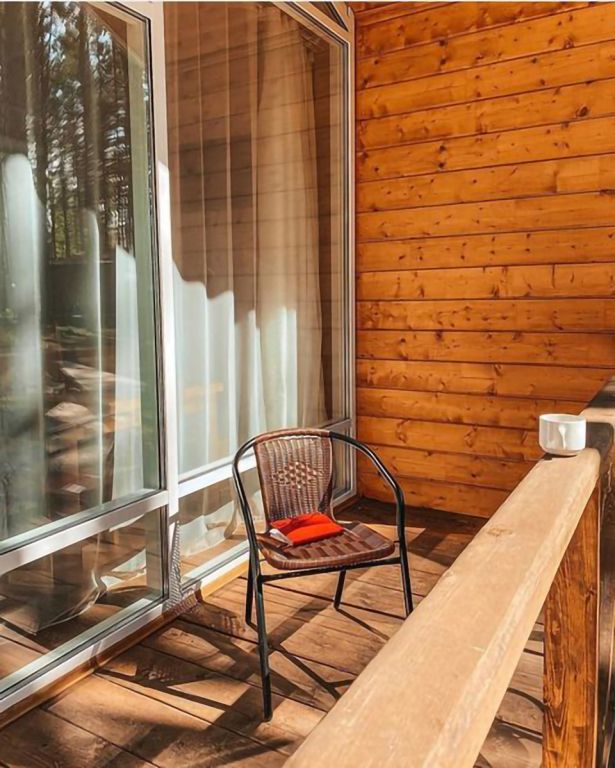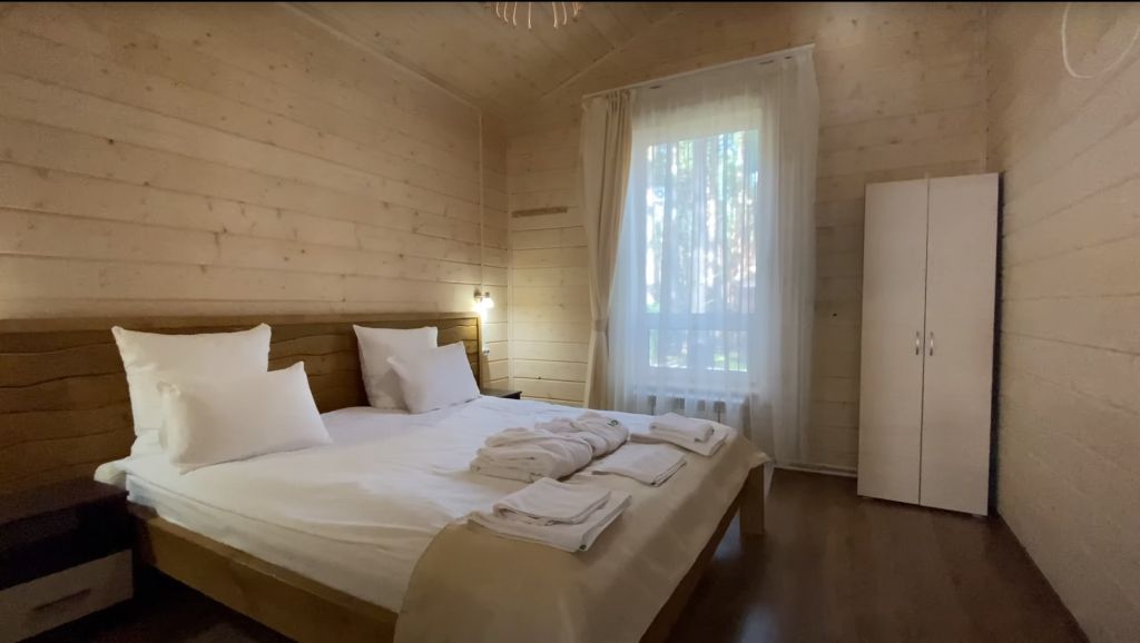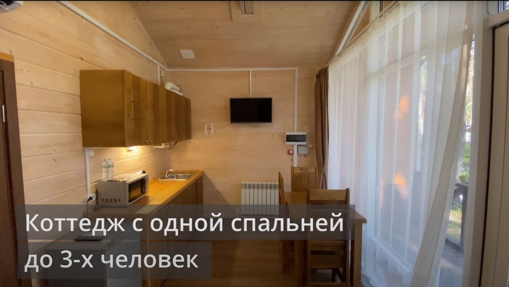 Всего на территории отеля 20 отдельно стоящих домиков (коттеджей). Каждый домик оборудован котлом, что позволяет регулировать комфортную температуру внутри. В просторной гостиной найдется место для всех — здесь можно посидеть в компании 8-10 человек. На ухоженной и красивой территории имеются 2 бани, озеро с рыбалкой, банкетный зал и детская площадка, автостоянка и место для костра.