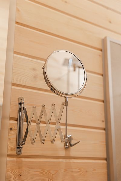 Баня малая (бревенчатая на дровах) на 4–6 человек. Минимальный сеанс 2 часа. Стоимость — 4000 ₽, каждый следующий час — 1500 ₽, свыше 4 человек — 500 ₽/человек.