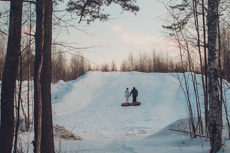 - С тюбингом и ватрушками