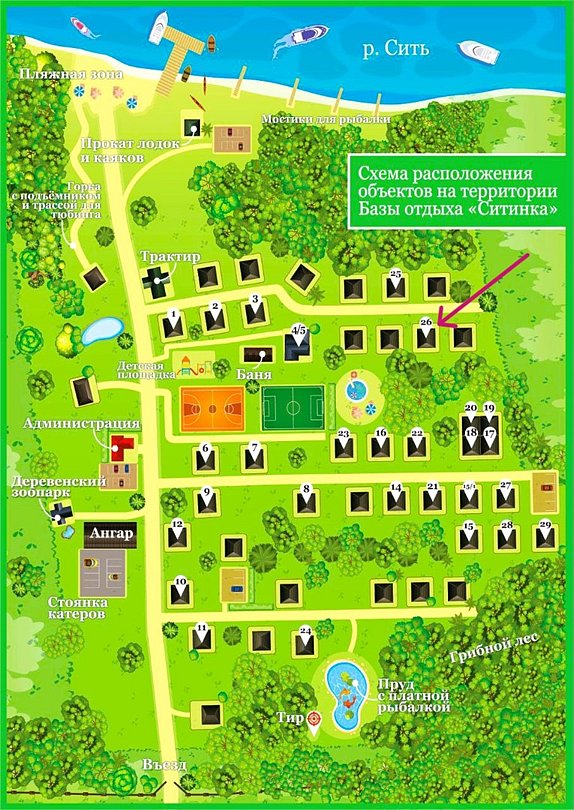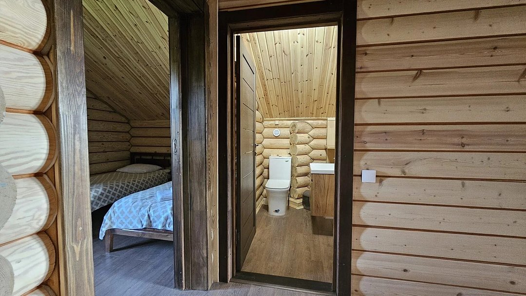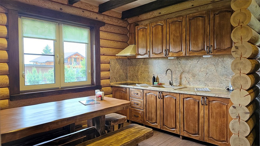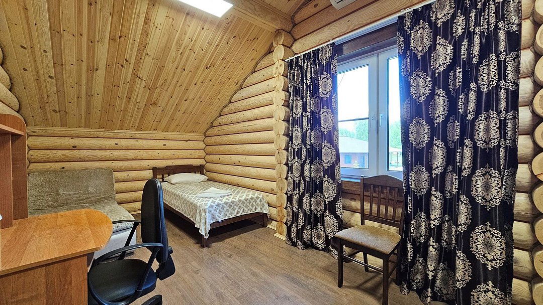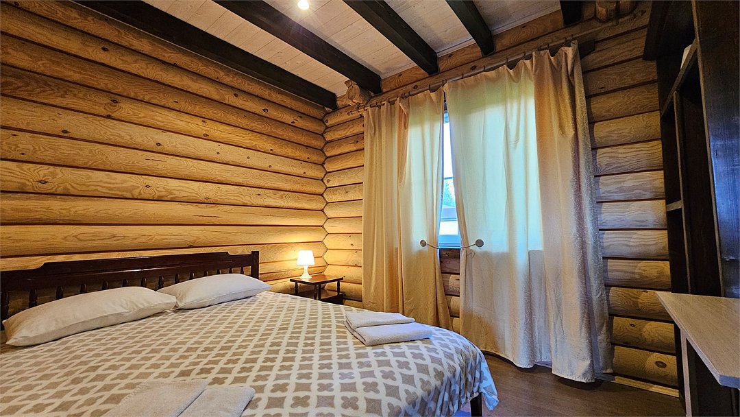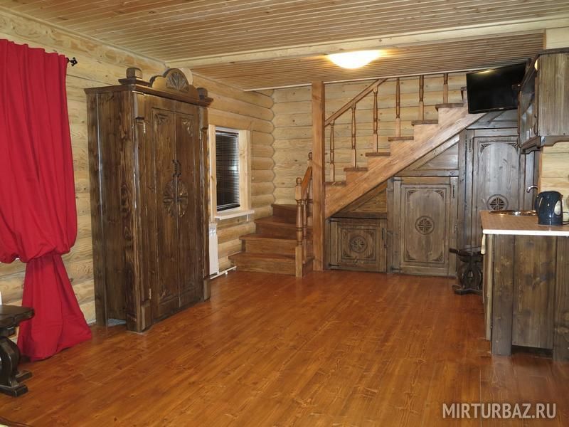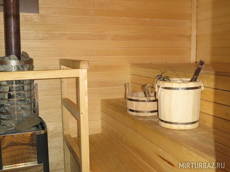 Банный комплекс представляет собой двухэтажный деревянный дом, на первом этаже которого расположены парилка, помывочное отделение, туалетная комната, кухня и большая гостиная с телевизором. На кухне есть вся необходимая посуда и чайник. На втором этаже бильярдная комната с 9-ти футовым столом для русской пирамиды.