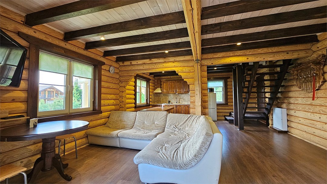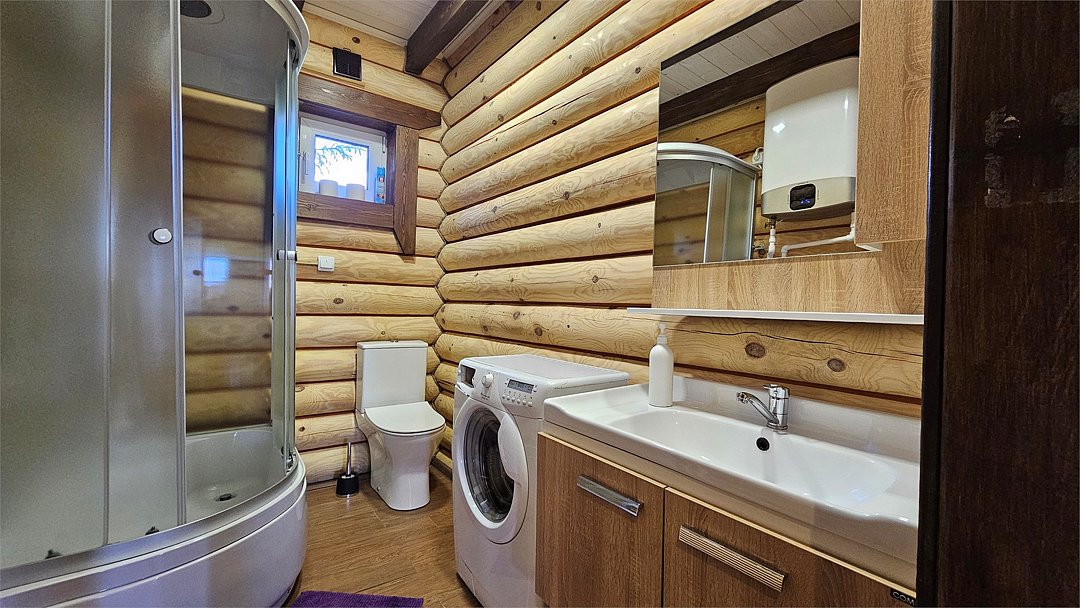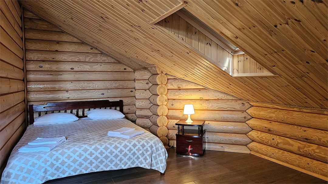 Просторный двухэтажный деревянный дом для большой компании. 150 м² для 9+2 гостей. 1 этаж: - просторная открытая веранда с обеденным столом и скамейками; - гостиная с большим удобным диваном и телевизором; - обеденная зона с большим столом; - кухня, оснащенная посудой; - санузел с душевой кабиной и стиральной машиной; - 1 комната с двуспальной кроватью. 2 этаж: - 1 комната с двуспальной кроватью с балконом и мансардным окном; - 1 комната с 2-мя односпальными кроватями с балконом; - 1 комната с 3-мя односпальными кроватями; - санузел. Дополнительно: - кондиционер; - тёплые полы; - бесплатный Wi-Fi. Дом расположен на территории коттеджного посёлка. Какие развлечения вас ожидают: 1. Рыбалка летняя/зимняя в реке/в водохранилище/платный пруд 2. Охота 3. Прокат катеров/аэроглиссеров/квадроциклов/велосипедов/лодок/каноэ/сабов/снегоходов 4. Тир, можно пострелять из пневматического оружия/арбалета/лука 5. Спортивные площадки, футбол/волейбол 6. Детская площадка 7. Зимой, покататься на коньках, с горки на ватрушках, имеется бесплатный бугельный подъёмник 8. Трактир, есть детское меню 9. Деревенский зоопарк 10. Пляж 11. Летом: аквапарк с бассейнами, пенное аква-шоу 12. Баня с бильярдом 13. Лес, грибы, ягоды, красивая природаУслуги и удобства