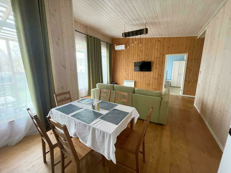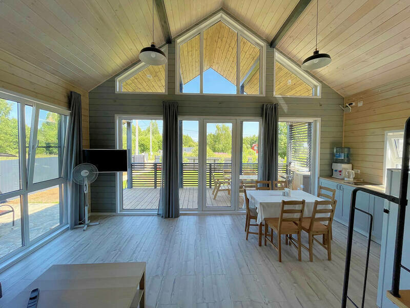 Коттеджи оснащены всем необходимым для хорошего отдыха от ежедневной рутины. В распоряжении гостей комфортная мягкая мебель, ванная комната с душем и туалетно-косметическими принадлежностями, шкаф для одежды. Расслабиться можно в собственной сауне. В числе удобств бесплатный wi-fi и парковка для автомобилей.