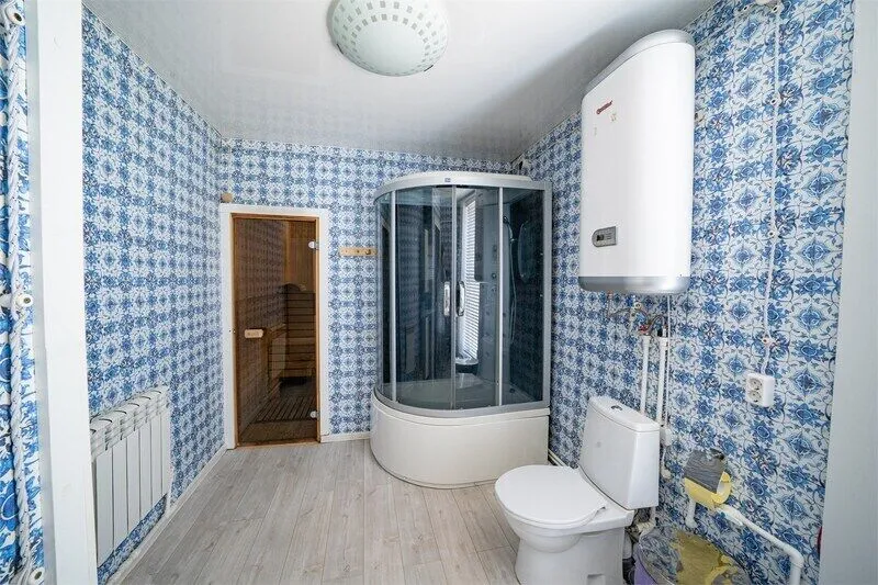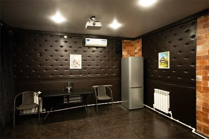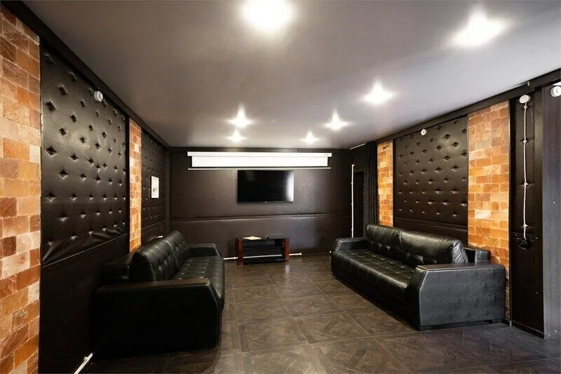 На первом этаже коттеджа расположена соляная сауна и комната отдыха.