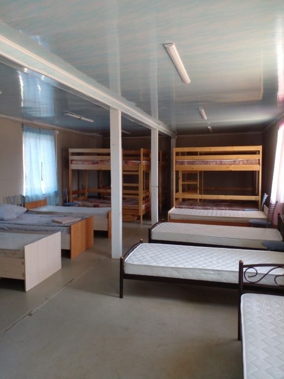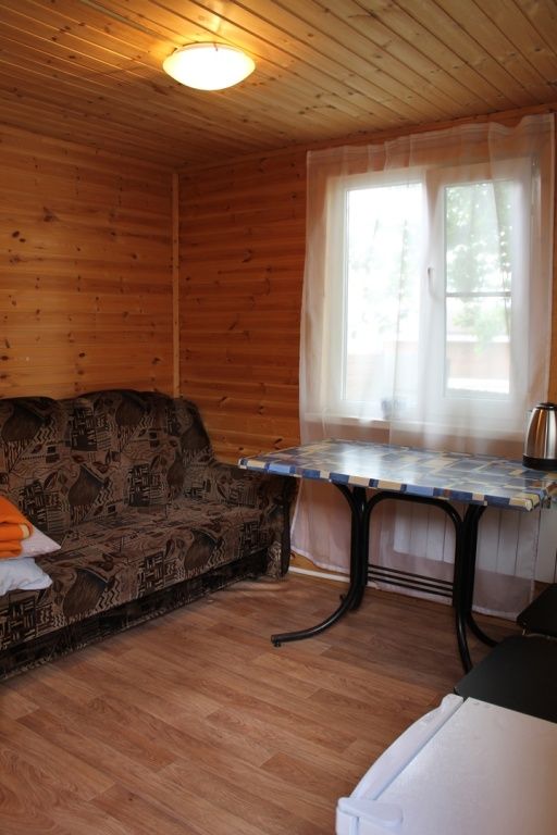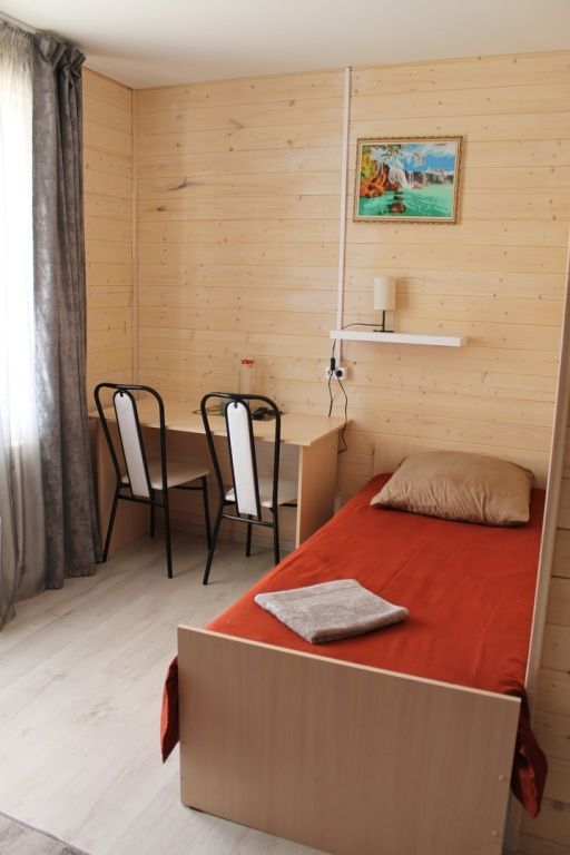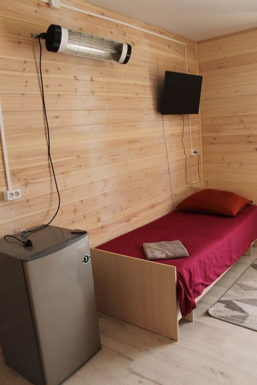 Холодильник, 2 односпальные кровати, стол+2 стула, электрический чайник, совместный санузел.
