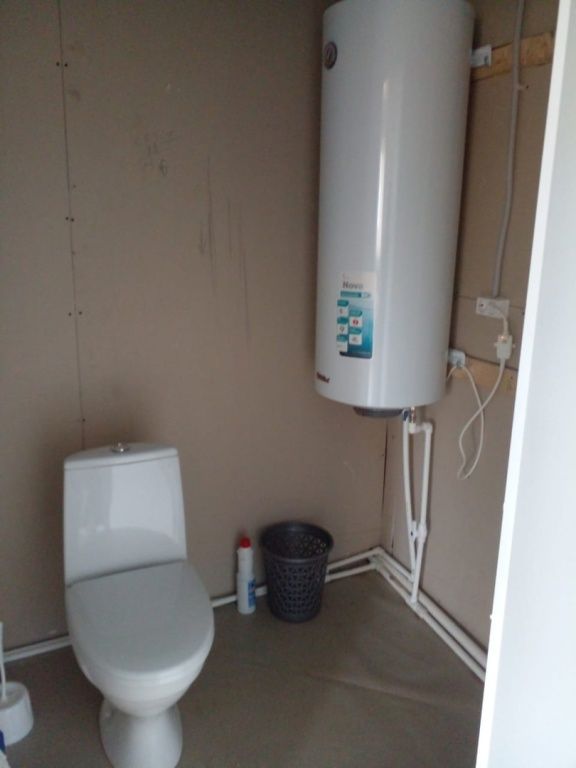 1этаж - стол + 8 стульев, угловой диван, маленький холодильник, микроволновая печь, телевизор, электрический чайник, совместный санузел.