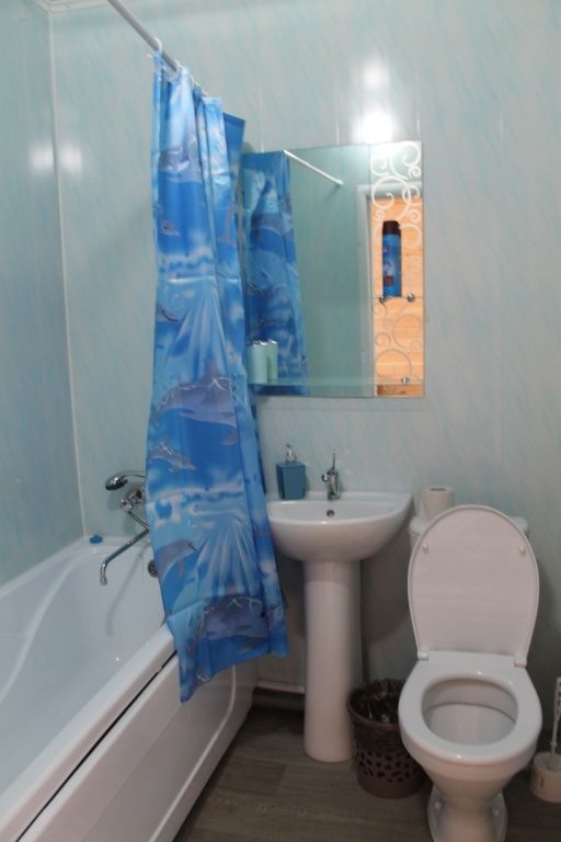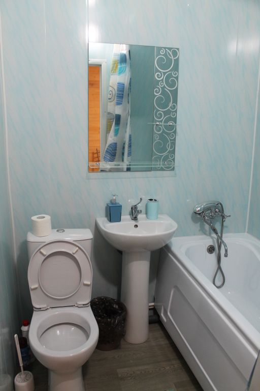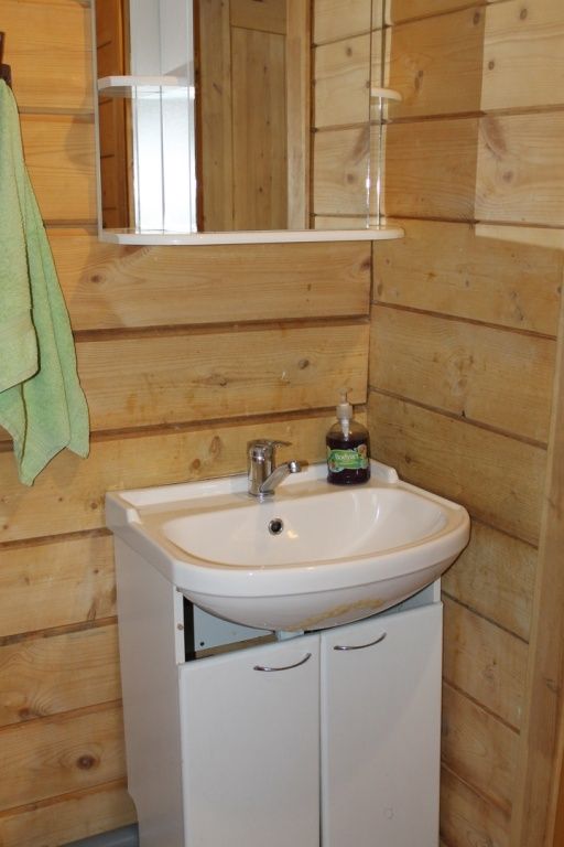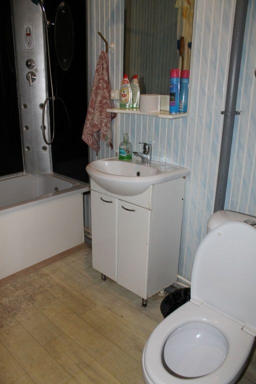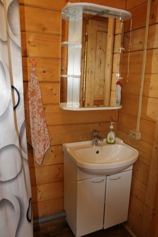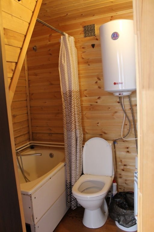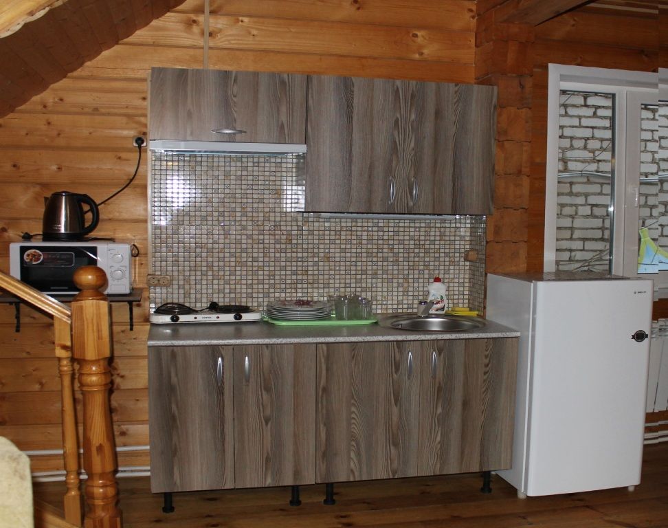 - 1 этаж - холодильник, микроволновая печь, электрический чайник, стол + 6 стульев, телевизор, совместный санузел.