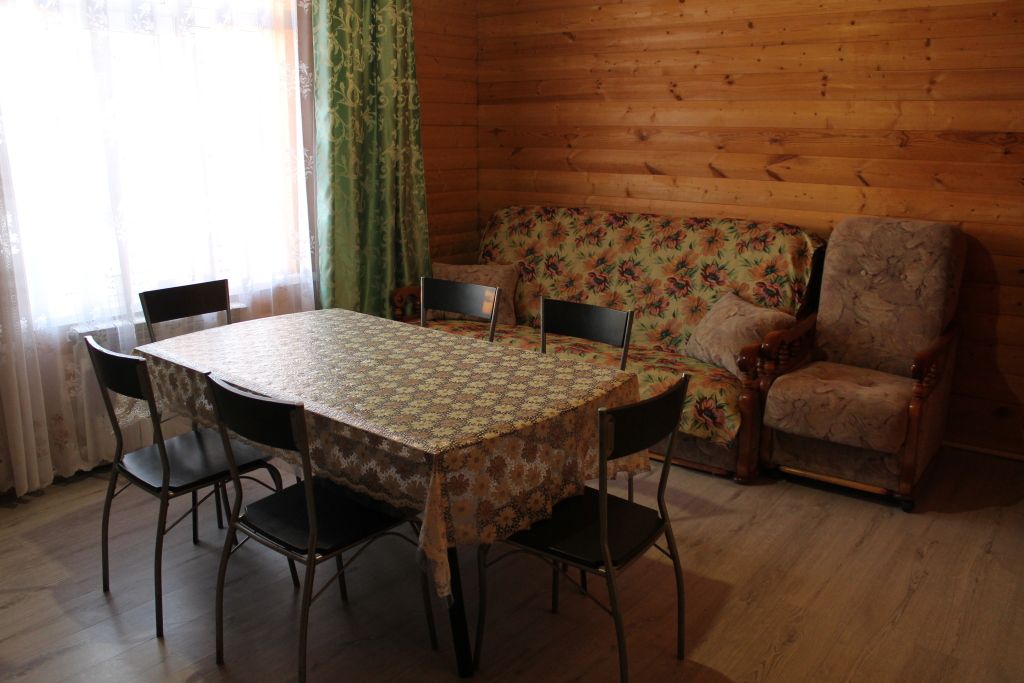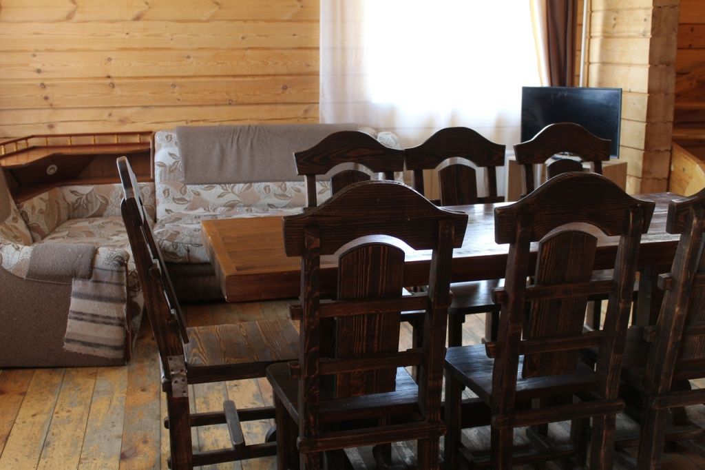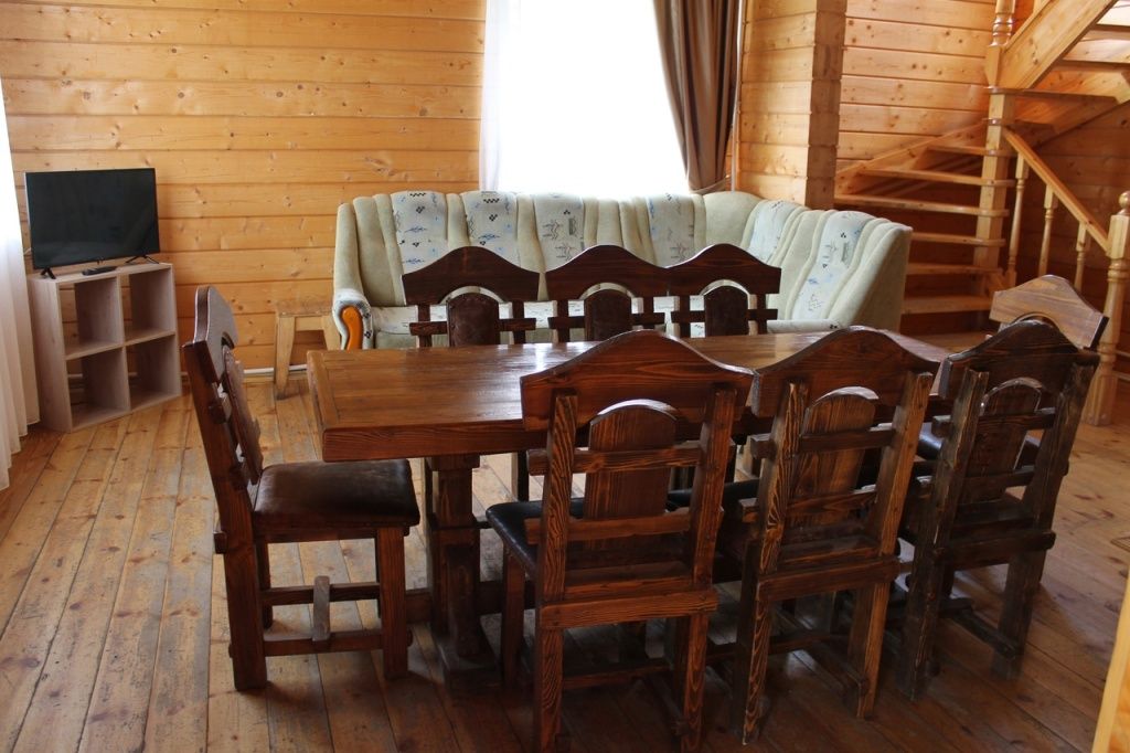 1этаж - стол + 8 стульев, кухонная зона, телевизор, совместный сан.узел. 2 этаж - 2 спальни (по 2 односпальной и 1 двухспальной кровати), выход на балкон, с видом на озеро. Прилагается мангальная зона.