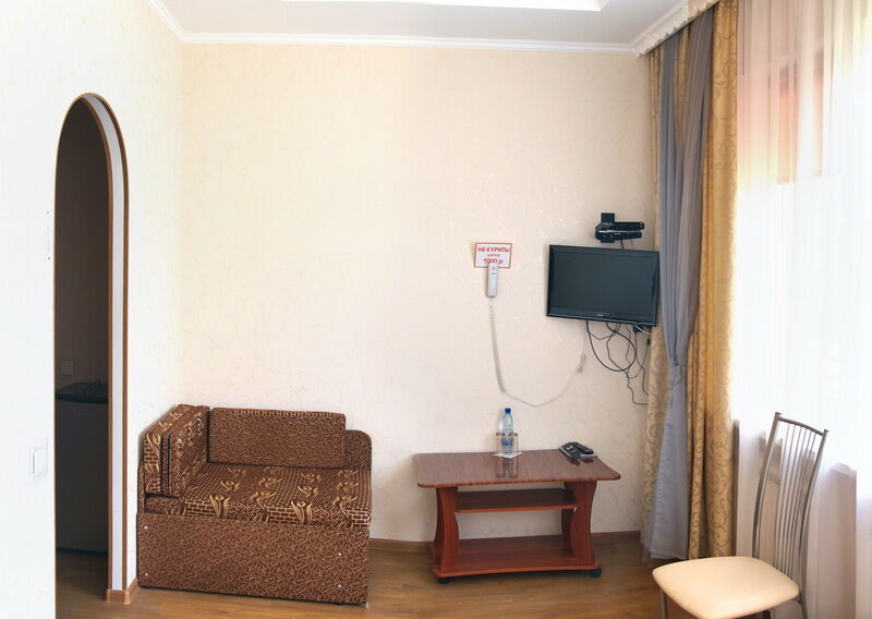 В номере: две раздельные кровати, шкаф для одежды, журнальный столик, плазменный телевизор, холодильник.