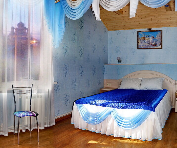 Гостевой дом, напоминающий коттедж, состоит их номеров, которые отличаются между собой разнообразной тематикой. Даже самый требовательный гость с легкостью сможет выбрать для себя номер по вкусу. Во дворе имеется беседка с мангалом для шашлыка, а также небольшая игровая площадка, где ребятишки здорово порезвятся и отдохнут. На территории работает столовая, в которой можно отведать блюда домашней кухни. Завтрак, уже входящий в стоимость номера, приятно порадует гостей.