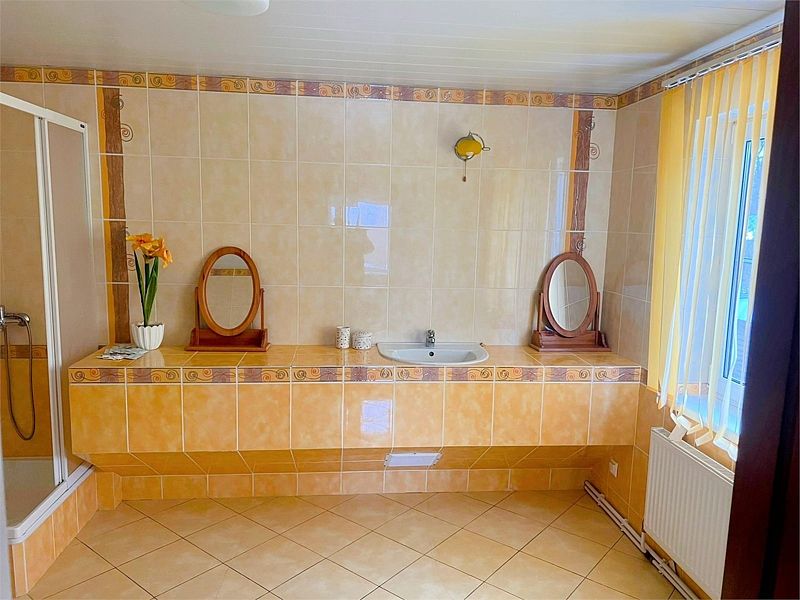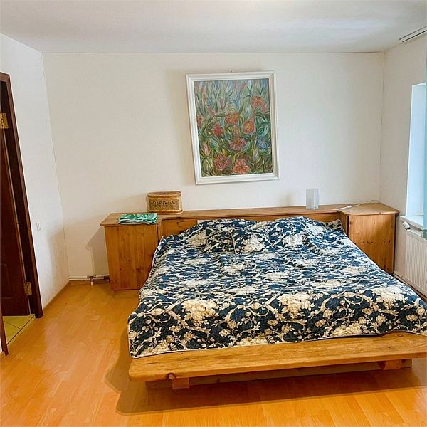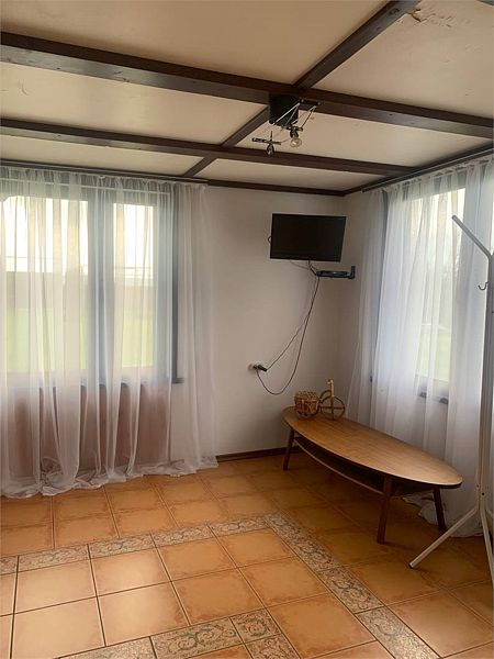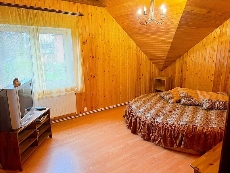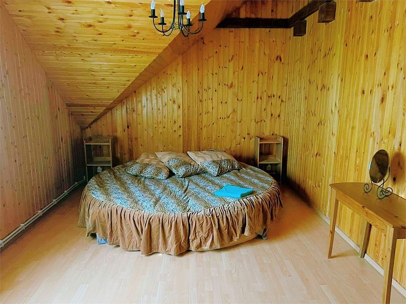 В коттедже три больших двухкомнатных номера, каждый из которых оснащен двуспальной кроватью, раскладным диваном, собственным сан. узлом и спутниковым телевидением.