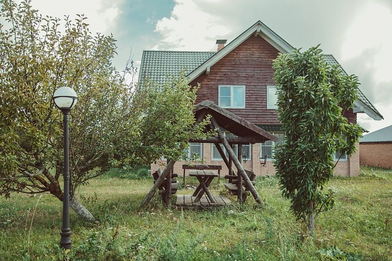 Двухэтажный коттедж с двумя комнатами находится на участке 40 соток.